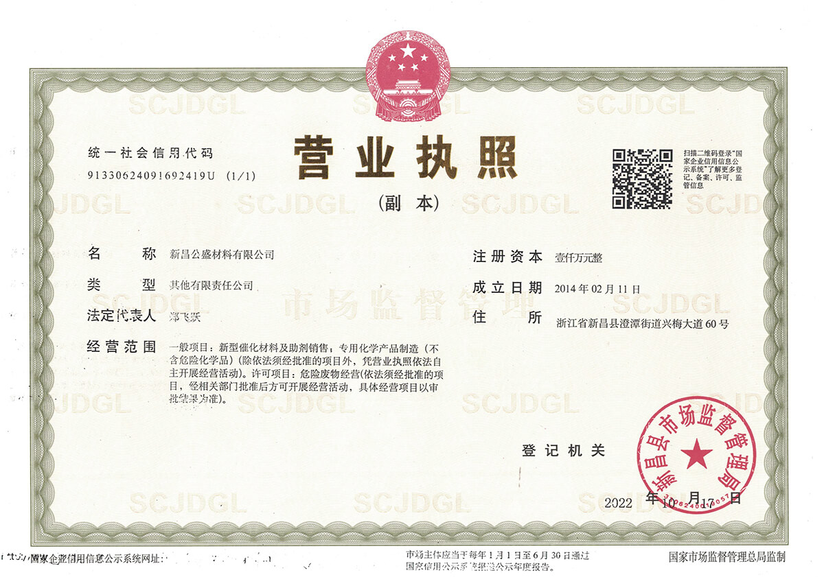 新昌公盛材料有限公司成立于2014年,坐落在江南大佛名城浙江新昌,地理位置優(yōu)越,交通便利,并配備有現(xiàn)代化的廠房和實(shí)驗(yàn)樓,總占地面積80畝。公司聚焦于研發(fā)和生產(chǎn)用于醫(yī)藥、農(nóng)藥、染料、材料等精細(xì)化工領(lǐng)域的貴金屬催化劑。目前主要從事鈀炭、鉑炭、釕炭等多項(xiàng)催化劑及醋酸鈀、DPPF二氯化鈀、雙三苯基膦二氯化鈀、四三苯基膦鈀、DBA鈀等均相催化劑的研發(fā)、生產(chǎn)、銷售以及失效鈀、失效鉑催化劑的回收再加工等業(yè)務(wù)。公司成立以來,一直以提升客戶產(chǎn)品的競爭力為經(jīng)營宗旨,通過持續(xù)改進(jìn)客戶所用催化劑的性能,來提高客戶產(chǎn)品的收率,提高催化劑的套用次數(shù),提高失效催化劑的貴金屬回收率,來降低客戶產(chǎn)品中貴金屬催化劑的成本,進(jìn)而提升客戶產(chǎn)品的競爭力。